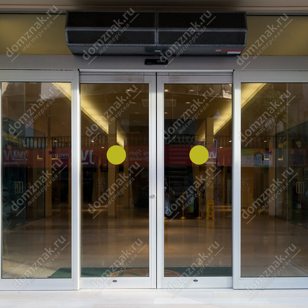 Прозрачные стеклянные двери магазинов, центров и других общественных мест – источник опасности для людей с ослабленным зрением. Программа «Доступная среда» призвана обеспечить безопасность и адаптацию пространства к нуждам одной из самых беззащитных категорий населения. Одним из инструментов программы является информационная наклейка «Желтый круг» для магазинов, торговых центров и объектов социально-бытового назначения, предназначенная для слабовидящих людей.