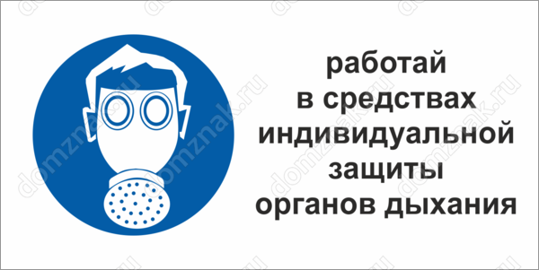 Табличка Работать в средствах индивидуальной защиты органов дыхания изготавливается в нескольких вариантах: