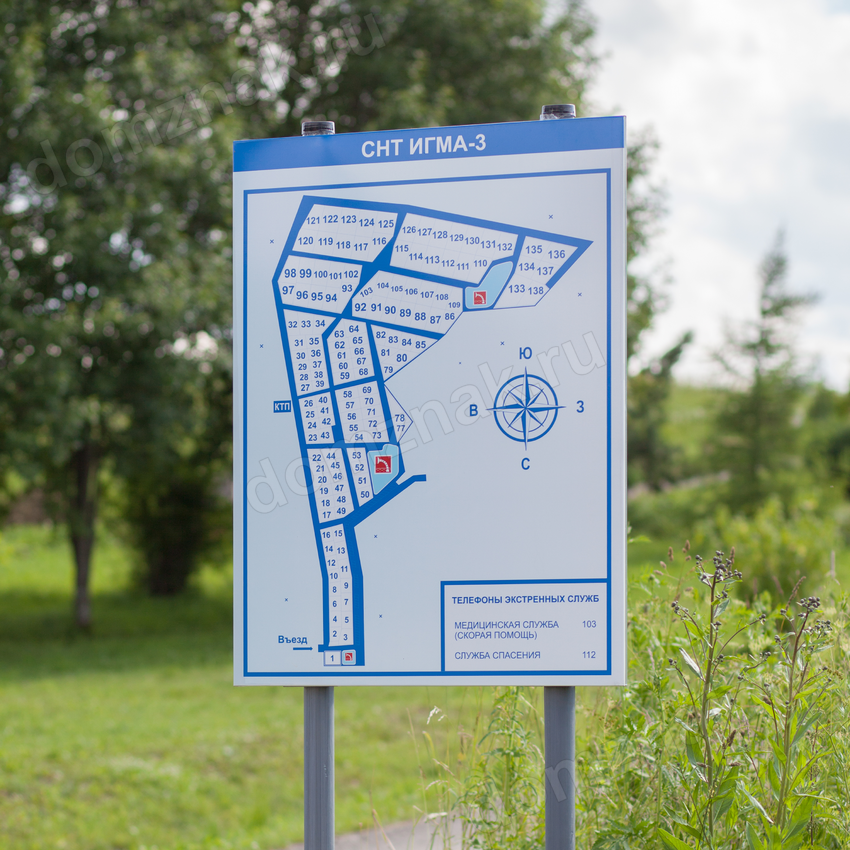 Табличка изготавливается на основе из пластика ПВХ (толщина 4 мм), оцинкованного металла (толщина 0,8 мм) или алюминиевого композита (толщина 3 мм). Подходит для установки на плоских поверхностях, таких как стена дома или забор.