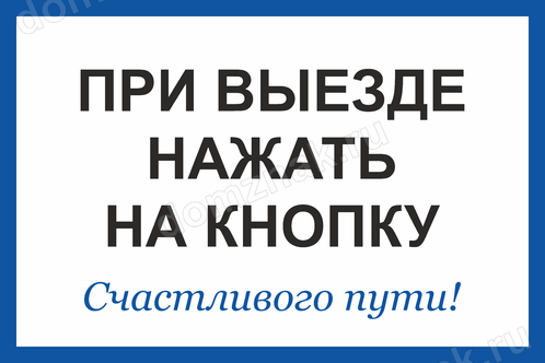 Табличка «При выезде нажать на кнопку» изготавливается на основе из пластика ПВХ или оцинкованного металла.