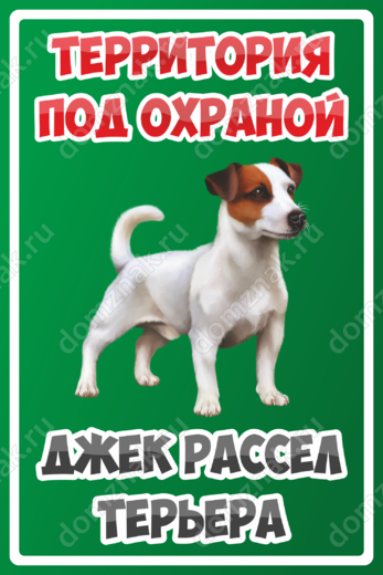 С табличкой «Территория под охраной» вы уменьшите вероятность незаконного проникновения преступников на вашу территорию. Благодаря ей все окружающие будут знать, что сюда лучше не ходить без сопровождения хозяина. Иначе получишь нагоняй от быстрого, опасного и злого охранника – пса породы джек-рассел-терьер.