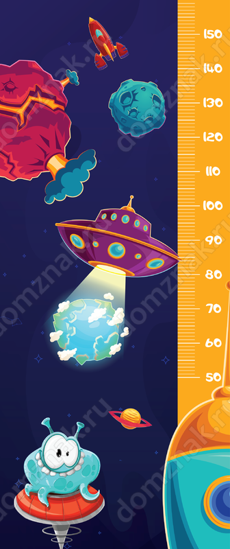 Ростомер для детского сада «Космос» станет любимой вещью маленьких воспитанников дошкольного учреждения. Он не только позволит им покорять космические пространства, не выходя за пределы кабинета, но также превратит процедуру измерения роста в увлекательное занятие. Помимо сантиметровой линейки на ростомер нанесены изображения летающих кораблей, планет и веселых инопланетян.