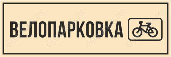 Вы можете заказать Табличку «Велопарковка» по индивидуальному дизайну или воспользоваться готовым вариантом от нашей компании.