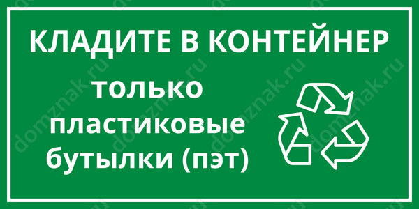 Табличка «Кладите в контейнер только пластик»