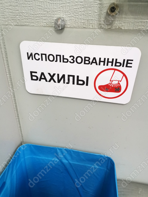 Табличка «Использованные бахилы» изготавливается в нескольких вариантах: