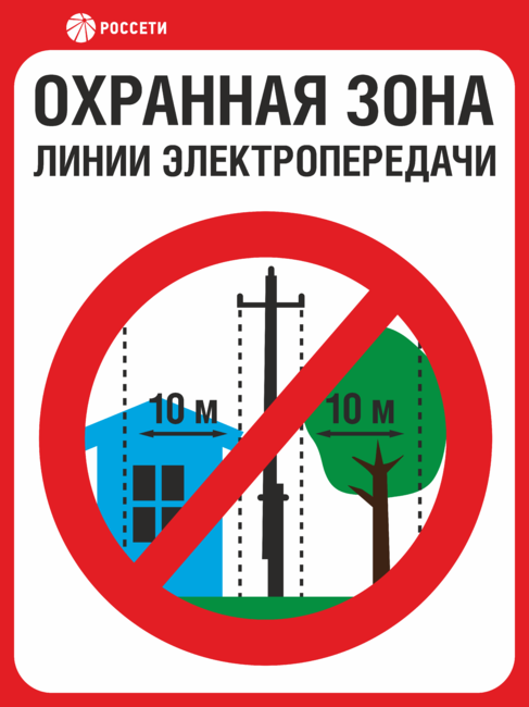 Табличка «Охранная зона ЛЭП 6-15 кВ – 10 метров, Россети»