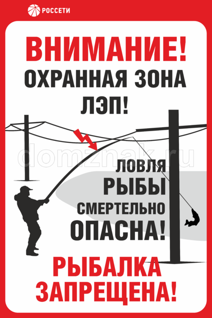 Табличка «Охранная зона ЛЭП. Ловля рыбы смертельно опасна»
