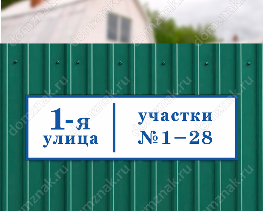 Табличка с номером улицы и номерами участков изготавливается на основе из пластика ПВХ или оцинкованного металла.