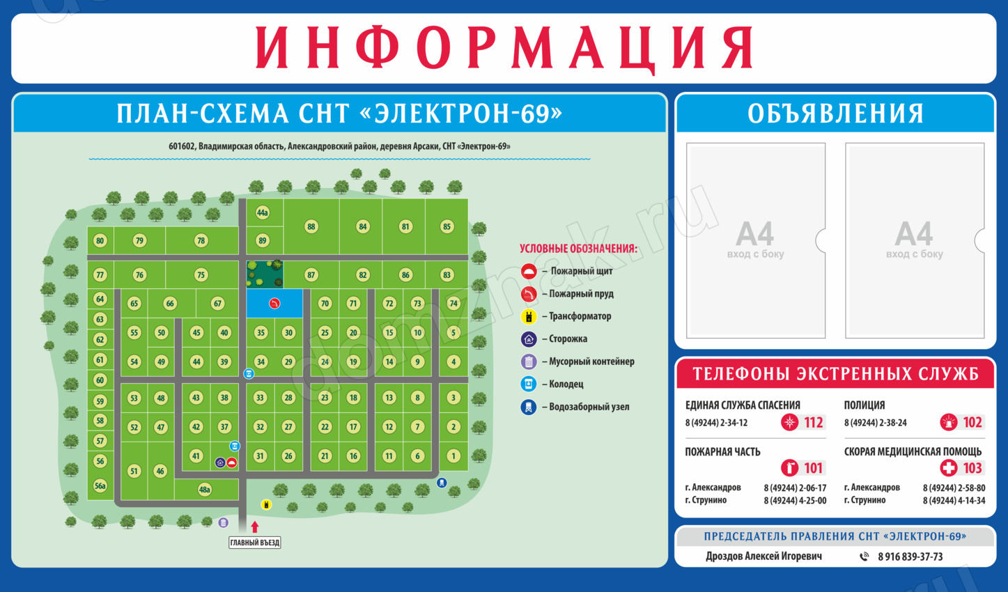 Информационный щит «План-схема СНТ»