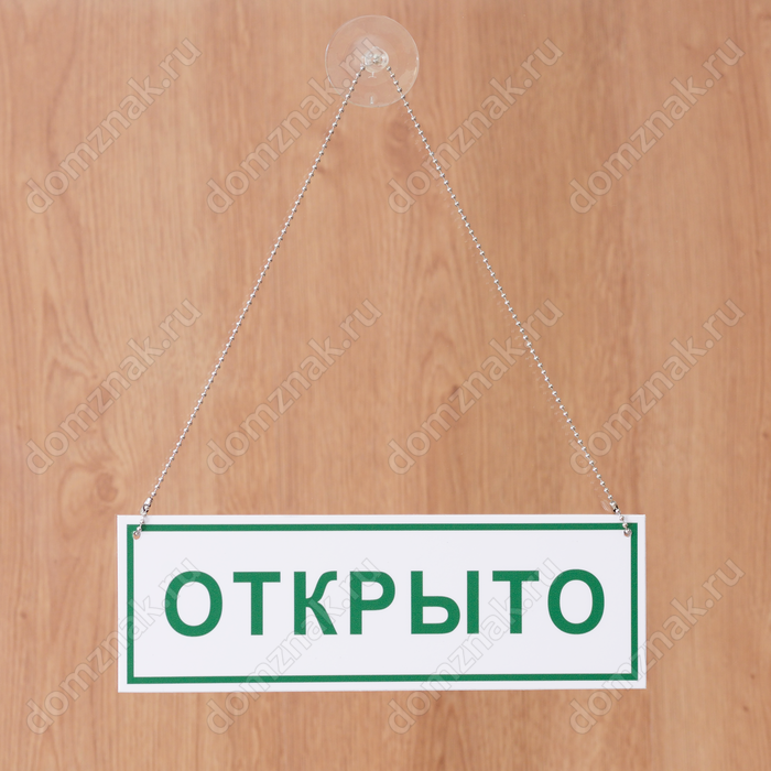 Табличка «Открыто-Закрыто» изготавливается из пластика ПВХ. Табличка комплектуется цепочкой и присоской для крепления к стеклу. По желанию заказчика, вместо цепочки, табличка может комплектоваться шнурком или капроновой нитью.