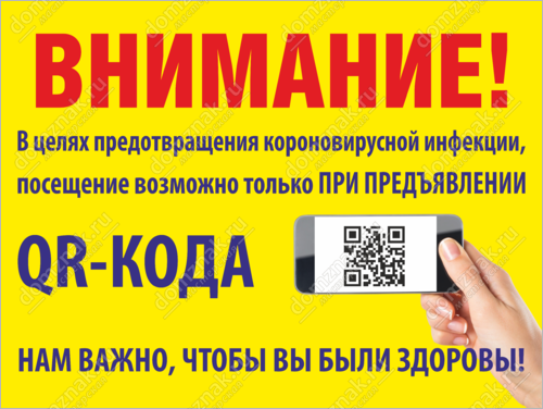 Наклейка (табличка) Внимание Посещение возможно при предъявлении QR-кода