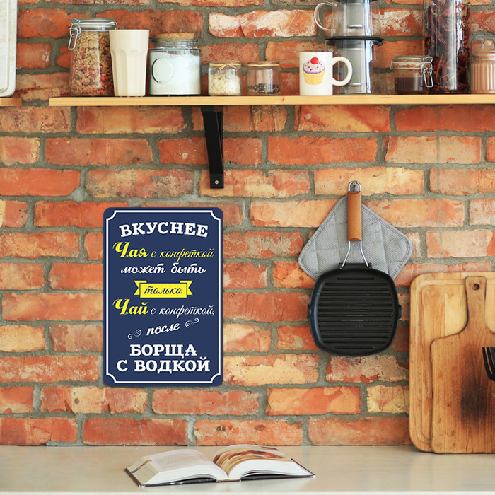 Табличка «Вкуснее чая с конфеткой, может быть только...» изготовлена из пластика ПВХ, толщиной 4 мм. Изображение наносится по технологии УФ-печати. Табличка предназначена для использования как в помещении, так и на улице.