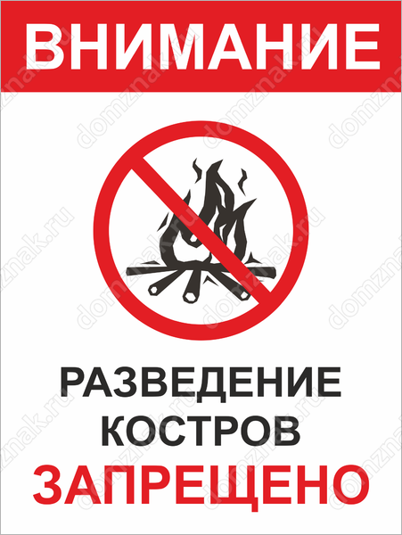 Лесные пожары – бич летнего сезона. Любители шашлыков и печеной картошки всегда находят для этих целей самые неподходящие места. Установленная табличка «Разведение костров запрещено» – минимальная возможность предотвратить появление мусора на территории парка или лужайки и сберечь лесной массив от возгорания. Заказать табличку «Разведение костров запрещено» в компании «Домзнак» – выгодное решение. Высококачественные материалы, оригинальный дизайн и кратчайшие сроки исполнения – по минимальной цене!