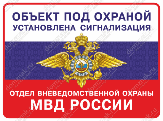 Табличка «Объект под охраной. Отдел вневедомственной охраны» изготавливается на основе из пластика ПВХ или оцинкованного металла.