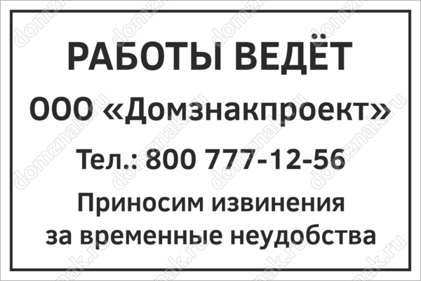Табличка «Работы ведёт... Приносим извинения за неудобства»
