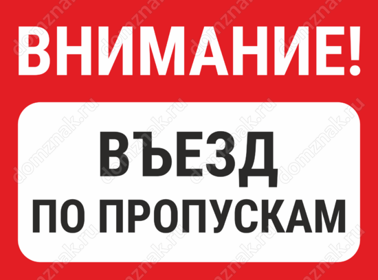 Вы можете заказать Табличку «Внимание! Въезд по пропускам» по индивидуальному дизайну или воспользоваться готовым вариантом от нашей компании.