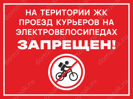 Табличка «На территории ЖК проезд курьеров на электровелосипедах запрещен»
