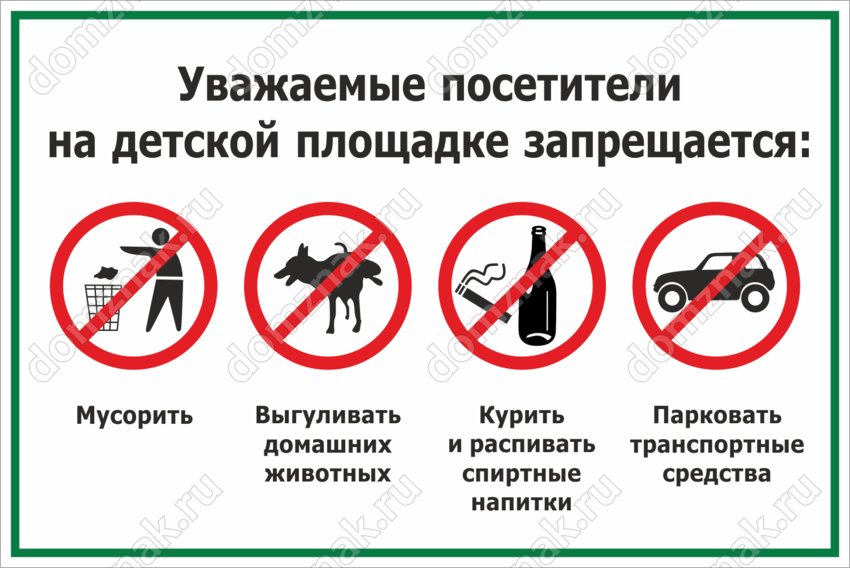 Табличка «На детской площадке запрещается» изготавливается на основе из пластика ПВХ или оцинкованного металла.