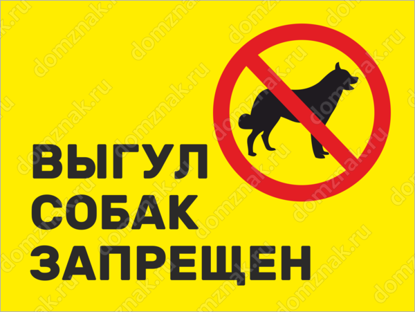 Табличка «Выгул собак запрещён» изготавливается на основе из пластика ПВХ или оцинкованного металла.