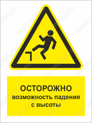 Табличка «Осторожно! Возможность падения с высоты» изготавливается в нескольких вариантах: