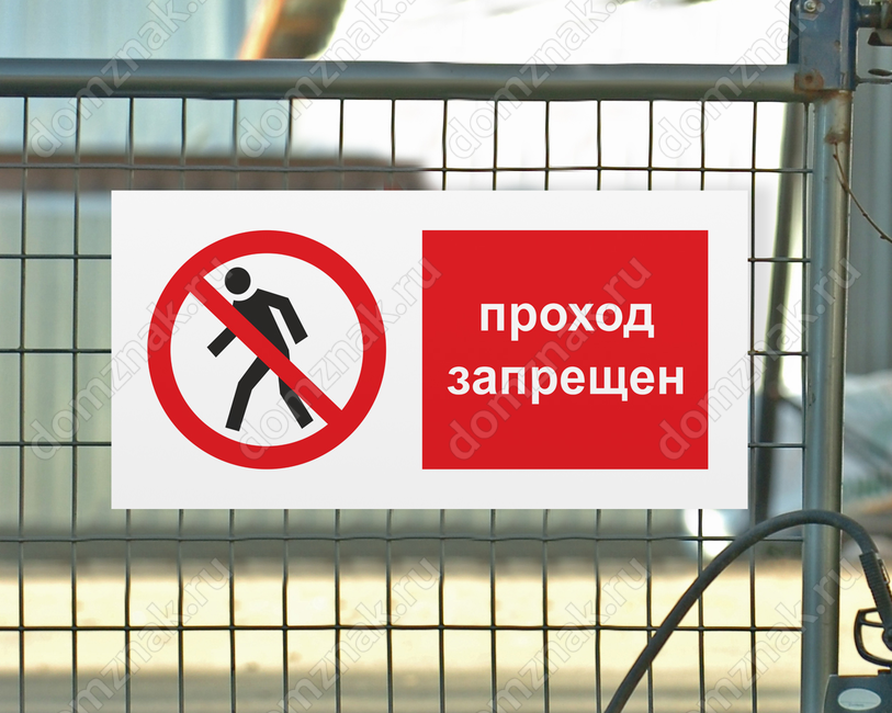 Перечёркнутый силуэт идущего человека демонстрирует правило – проход запрещён. Установка таблички «Проход запрещен», выполненного в соответствии с заданными законом стандартами, позволяет запретить проход там, где это необходимо.